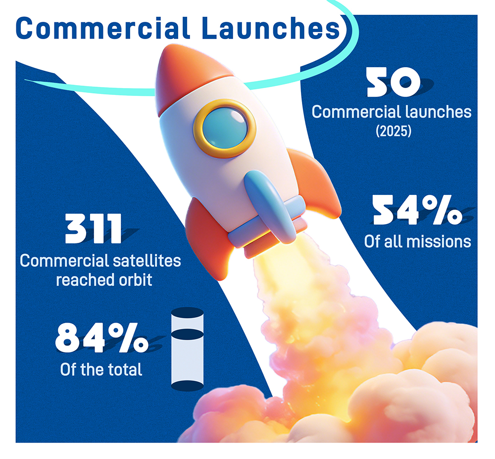 Over the past decade, the sector has achieved remarkable results. Data shows that in 2025, China’s commercial space sector will have completed 50 launch missions, accounting for 54% of the total space launches over the year.