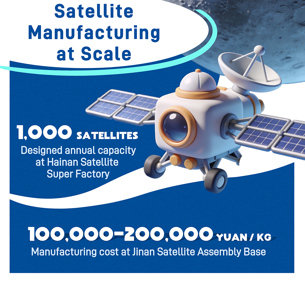 Mass satellite production is breaking traditional models. The Satellite Super Factory in Hainan is designed with an annual production capacity of 1,000 satellites. The satellite assembly base in Jinan, Shandong, cut the manufacturing cost to 100,000-200,000 yuan per kg. And LandSpace in Zhejiang has reduced the component outbound time from 3 minutes to 30 seconds.