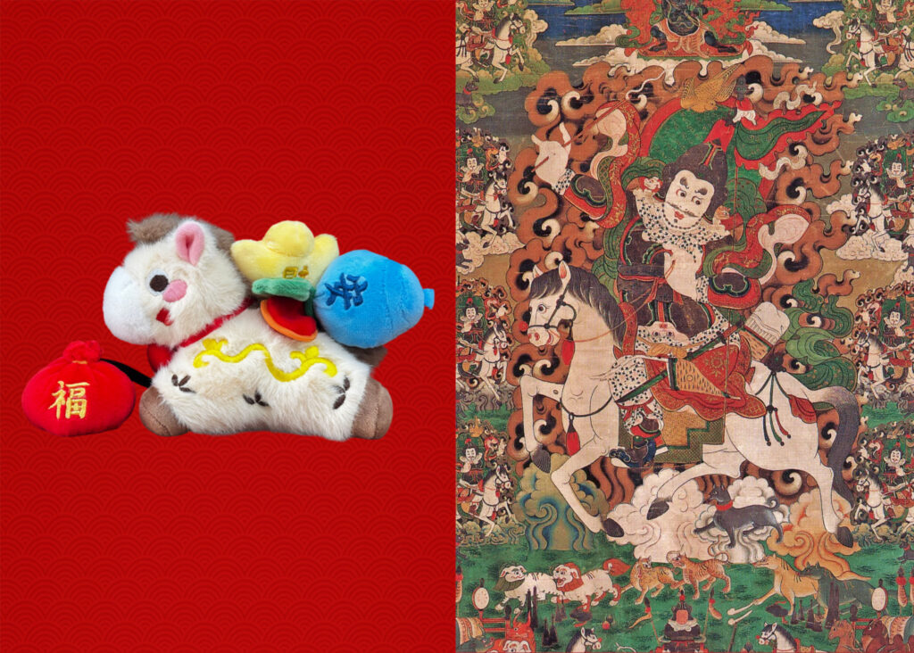 Inspired by the white horse, the temple’s traditional pharmacy has released a plush charm called the ‘Blessings on Horseback’. The plush charm is decorated with traditional honeysuckle patterns, a design that originated in ancient Greece and spread to China via Buddhism.