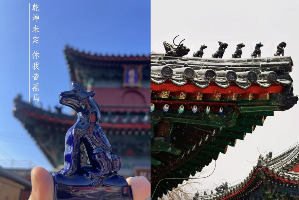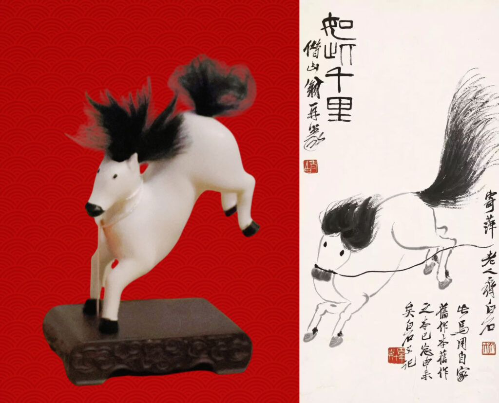 At the Xu Beihong Memorial Museum in Beijing, the artist’s famous galloping horses have been transformed into festive red badges. Each badge comes with a card printed with Xu’s quotes on strength and resilience.